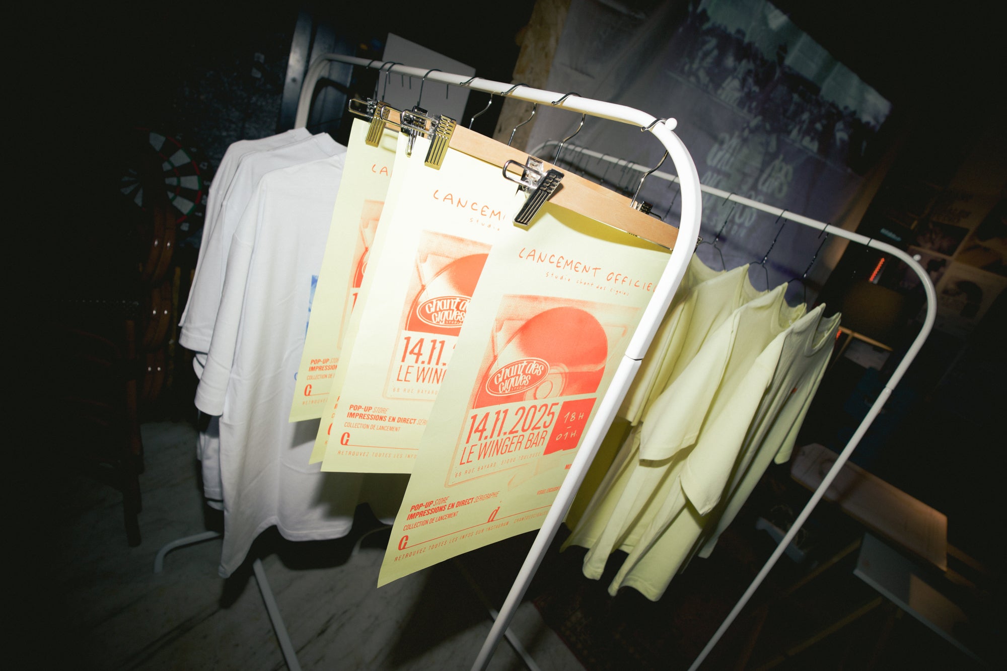Pour le lancement du Studio Chant des Cigales, l’objectif était clair : créer un événement qui mélange sérigraphie artisanale, musique et rencontres. Cette première soirée pop-up/Mix au Winger Bar à Toulouse a parfaitement posé les bases de ce que je souhaite développer autour de la marque : un projet où l’événementiel occupe une place centrale.